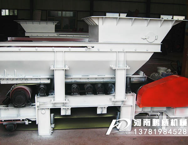 料倉內(nèi)的物料經(jīng)連接段進(jìn)入導(dǎo)料槽落在甲帶上,甲帶靜止時(shí)物料最終靠內(nèi)摩擦力而停止運(yùn)動(dòng),在出料口形成一定的角度的靜止角度堆積;當(dāng)驅(qū)動(dòng)滾筒在外力的驅(qū)動(dòng)下開始旋轉(zhuǎn)時(shí),帶動(dòng)膠帶運(yùn)動(dòng),膠帶帶動(dòng)其上的甲帶運(yùn)動(dòng),甲帶帶動(dòng)其上的物料導(dǎo)向出料口,運(yùn)行中的甲帶在出料口卸載后轉(zhuǎn)向回程,物料不斷從出料口排出,完成給料過程;二次密封裝置對從導(dǎo)料槽和膠帶之間間隙中漏出的物料提供密封;改變給料量,可通過調(diào)節(jié)轉(zhuǎn)臂行星摩擦式無極變速機(jī)的調(diào)速手輪來改變輸出軸轉(zhuǎn)速,改變甲帶運(yùn)行速度的大小,從而改變給料量;改變給料量,也可通過選配變頻器,改變電動(dòng)機(jī)轉(zhuǎn)速,從而改變給料量。