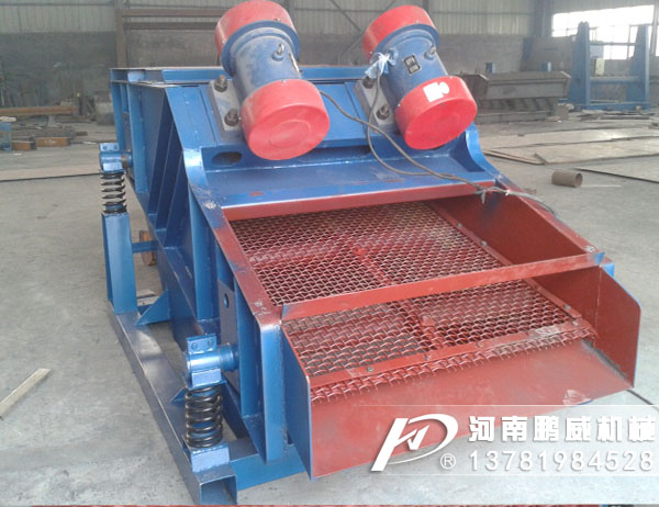主要由篩箱、激振器、支承系統(tǒng)及電機組成。兩個互不聯(lián)系的振動器作同步反向運轉(zhuǎn),兩組偏心質(zhì)量產(chǎn)生的離心力沿振動方向的分力疊加,反向離心抵消,從而形成單一的沿振動方向的激振動,使篩箱做作往復直線運動。