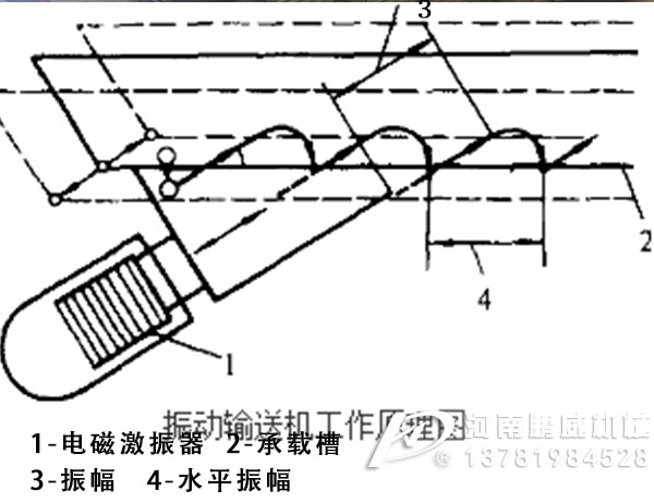 當槽體再次向前振動時,物料又因受到加速而被輸送向前。如此重復循環,實現物料的輸送。