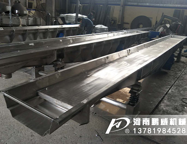 借助振動作用連續輸送物料的設備。它主要由激振器、承載槽、主振彈簧和機架等組成。可用于水平、緩傾斜或垂直運輸(沿螺旋槽上升)各種松散物料。在輸送過程中可同時完成篩分、干燥、脫水、冷卻、混合等工藝。對粉塵多和含有害成分的物料還可用密封的槽體輸送。其結構簡單,功率消耗小,已廣泛用于礦山。